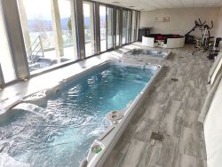 CHALET DE 356 m² SUR UN TERRAIN DE 565 M² en R+2 composé, - En RDC d'une entrée avec rangement, d'un garage, d'une chambre avec salle d'eau, et d'un grand séjour cuisine donnant sur une terrasse. - Au niveau -1 d'une pièce de détente, d'une buanderie, et de 4 chambres avec 2 salles d'eau. - Au niveau -2 d'une pièce accueillant une piscine ainsi qu'un jacuzzi et coin détente, d'une salle d'eau et d'une pièce de rangement. Chalet comprenant 3 terrasses avec un accès extérieur pour chaque niveau, vue lac et montagnes.