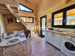 D'une surface de 35 m² au sol (+ mezzanine, soit environ 50 m² habitables), ce chalet spacieux et lumineux se compose de :