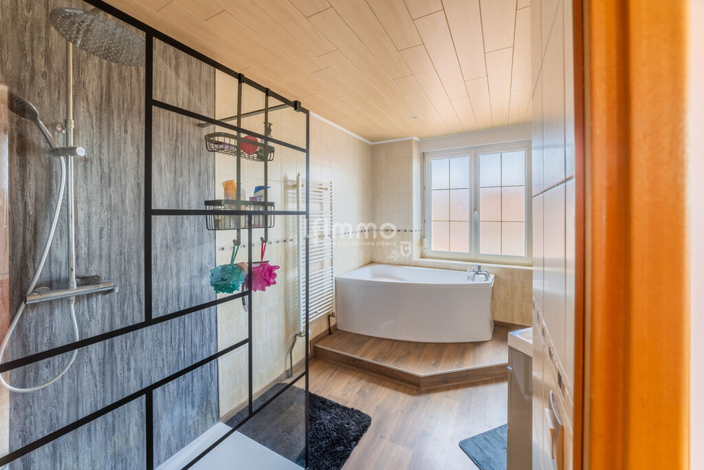 Reyersviller proximité Bitche (57230) Coup de coeur assuré pour cette maison (style chalet)au calme sur deux niveaux d une surface habitable de 75 m2 et d' une terrasse couverte de 50 m². Au rez-de-chaussée se trouve une cuisine équipée, la salle de bain, et un WC, et une pièce à vivre avec accès direct sur une belle terrasse de 50 m2 qui vous offre une belle vue panoramique. À l'étage, se trouve deux chambres et une pièce supplémentaire Au Sous-sol il y a un garage et une cave voûtée qui demande un peu de rénovation. Le tout se trouve sur un terrain de 700 m2 ou vous y trouverez un chalet de 20 m². Côté technique, la maison est isolé, chauffage fioul et pompe à chaleur air,eau,aux normes (RGE). Les fermetures sont en PVC avec volets électrique.Pour des renseignements supplémentaires, vous pouvez me contacter,Fabing Christophe tel 0615639450 .prix du bien163000euros.Ich spreche deutsche