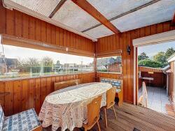 EXCLUSIVITE, CABOURG, Parc Résidentiel de Loisirs CALIFORNIA PARK avec piscine chauffée, tennis et étang, chalet de 56,03 m² Loi CARREZ (97,26 m² au sol), offrant : salon, salle à manger donnant sur véranda exposée SUD, cuisine aménagée et équipée, chambre avec point d'eau, dégagement avec rangement, salle d'eau avec wc. A l'étage : deux chambres, dortoir et grenier. Terrain clos de 201 m² avec abri de jardin et stationnement privatif. Beau potentiel d'aménagement, possibilité de plus de 10 couchages. Organisez votre visite dès maintenant !