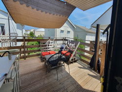 EXCEPTIONNEL GRUISSAN, proche de toutes commodités, à 100 mètres de la plage, venez découvrir ce charmant chalet entièrement rénové avec goût. Il se compose à l'étage d'un appartement lumineux d'une superficie habitable d'environ 50 m2 composé d'une belle pièce de vie avec mezzanine et grandes baies vitrées donnant sur une belle terrasse de 25 m2 avec peu de vis à vis, une chambre avec coin rangement , une salle d'eau et une cuisine semi indépendante équipée. Au rez de chaussée, un appartement de service d'environ 19 m2 composé d' une pièce à vivre, une pièce servant de chambre et une salle d'eau. Le tout avec une réserve d'environ 12 m2 et une allée pour garer les voitures. Possibilité de communiquer les 2 appartements. CLIMATISATION REVERSIBLE. Aucun travaux à prévoir. Pour plus de renseignements vous pouvez contacter Pascale NEGRE EI au 06 24 10 22 43. Les honoraires sont à la charge du vendeur.