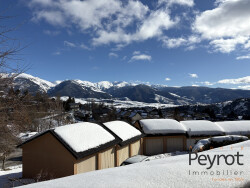 Superbe chalet accolé exposé Sud Est Bas de Font-Romeu Situé dans une résidence calme et recherchée, en bas de Font-Romeu, ce charmant chalet accolé bénéficie d'une exposition plein Sud et d'une agréable vue dégagée sur les montagnes. Il se compose d'une loggia faisant office d'entrée, d'un bel espace de vie lumineux avec séjour et grande cuisine ouverte, d'une chambre, ainsi que d'une salle de bain avec WC. À l'étage, vous trouverez une mezzanine et une seconde chambre, offrant des espaces supplémentaires idéaux pour accueillir famille et amis. Implanté dans un quartier paisible, à seulement 2 minutes à pied de l'école, ce bien combine parfaitement tranquillité et praticité au quotidien. Un garage fermé complète ce bien. Chalet vendu meublé. Pour toute information complémentaire ou pour organiser une visite, n'hésitez pas à nous contacter.