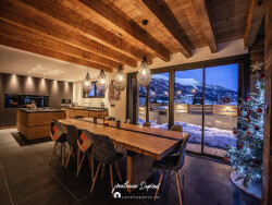 Imaginez-vous réveillé par les premiers rayons du soleil qui inondent vos six chambres spacieuses, chacune conçue pour offrir un confort optimal. Les pièces de vie, au nombre de quatorze, sont pensées pour accueillir vos moments de détente et de convivialité. Le salon, avec sa vue imprenable sur les montagnes, est un véritable écrin de luxe.