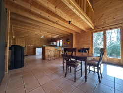 Authentique chalet en bois avec 3 chambres, au coeur du Domaine de Carheil. Cette jolie maison édifiée en 2005 propose une pièce de vie exposée Sud et Ouest, avec un toit cathédrale, ainsi qu'une cuisine ouverte aménagée. Le poêle à bois scandinave rajoute une touche chaleureuse au rez-de-chaussée, et constitue le mode de chauffage principal de la maison. Une grande chambre de 15 m² garantit une vie de plain-pied, avec la salle d'eau également présente au rez-de-chaussée, équipée d'un sauna traditionnel. WC séparés et cellier attenants.