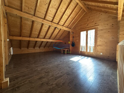 A l'étage sous mansardes, une grande mezzanine vous permettra un usage de salon, salle de jeux ou espace de télétravail, en complément des 2 chambres d'environ 12 et 14 m² au sol.