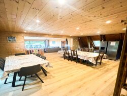 Imaginez-vous dans ce chalet chaleureux, où chaque détail a été pensé pour votre confort. La cuisine américaine aménagée et équipée est un véritable espace de vie, idéal pour les repas en famille ou les soirées entre amis. Les grandes baies vitrées inondent les pièces de lumière naturelle, créant une atmosphère chaleureuse et accueillante.