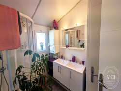 Il s'agit d'un modèle Corbi 56 de la marque Cistebois (anciennement RXL), parfaitement entretenu et comprenant : une pièce de vie lumineuse avec cuisine ouverte, aménagée et équipée (plaque de cuisson, hotte, réfrigérateur/congélateur, lave-vaisselle). un espace nuit : deux chambres confortables, dont une avec dressing. une salle d'eau avec douche et un WC indépendant. une grande terrasse couverte et abritée pour profiter de la vue en toute saison, complétée par un bel espace enherbé. Le terrain dispose de deux places de parking privatives directement sur la parcelle.