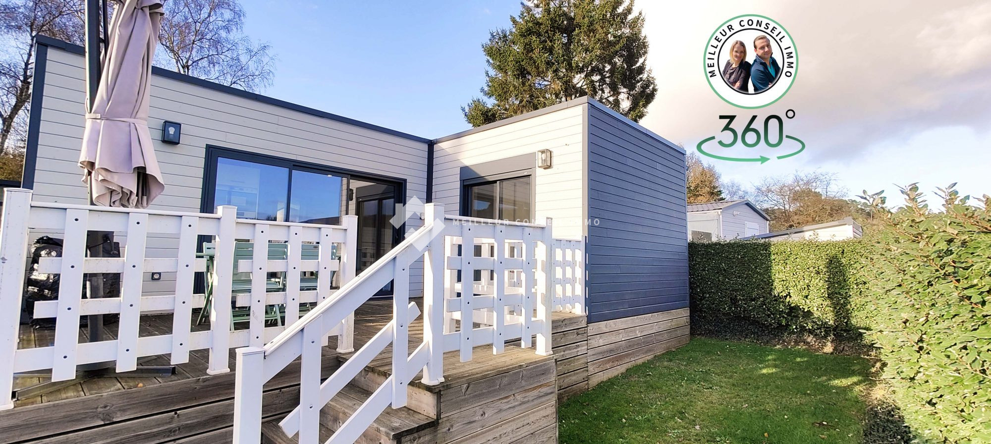 Il s'agit d'un modèle Corbi 56 de la marque Cistebois (anciennement RXL), parfaitement entretenu et comprenant : une pièce de vie lumineuse avec cuisine ouverte, aménagée et équipée (plaque de cuisson, hotte, réfrigérateur/congélateur, lave-vaisselle). un espace nuit : deux chambres confortables, dont une avec dressing. une salle d'eau avec douche et un WC indépendant. une grande terrasse couverte et abritée pour profiter de la vue en toute saison, complétée par un bel espace enherbé. Le terrain dispose de deux places de parking privatives directement sur la parcelle.