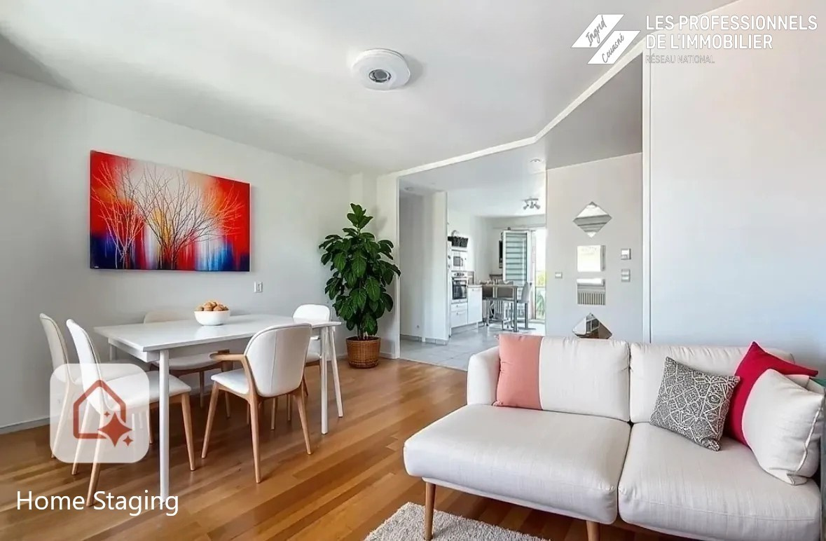 Pièce de vie spacieuse et lumineuse avec accès direct au balcon, idéale pour partager des moments conviviaux.