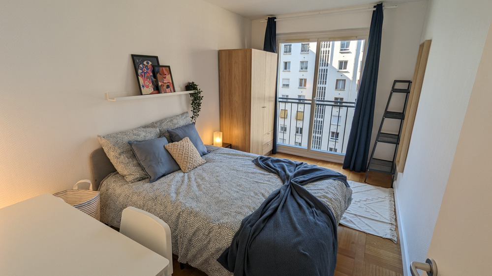 Chambre en colocation disponible à la location au sein d'un appartement meublé et équipé situé à Paris, dans un quartier animé et à proximité des transports en commun.