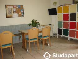 Avec une grande cuisine commune (environ 25 m²). Elle est équipée de tables de cuissons, frigos, congélateur, micro-ondes, de casiers individuels, de tables bancs et chaises.