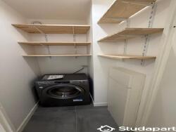 Cellier avec rangements et machine à laver/sèche linge