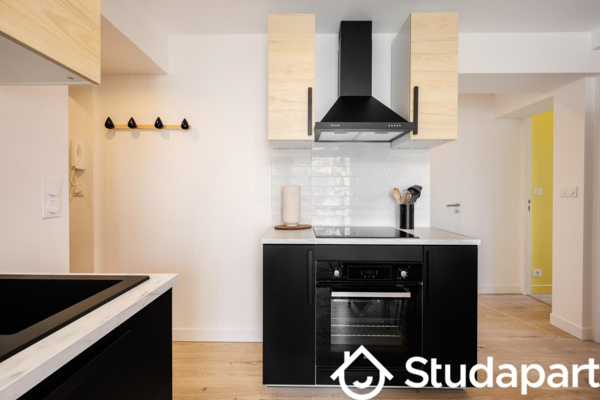 L'appartement est composé d'une entrée desservant une cuisine indépendante, équipée et fonctionnelle, dans laquelle vous trouverez tout l'électroménager nécessaire : lave-vaisselle, four, plaques, hotte, frigo, cafetière, vaisselle et ustensiles de cuisine.