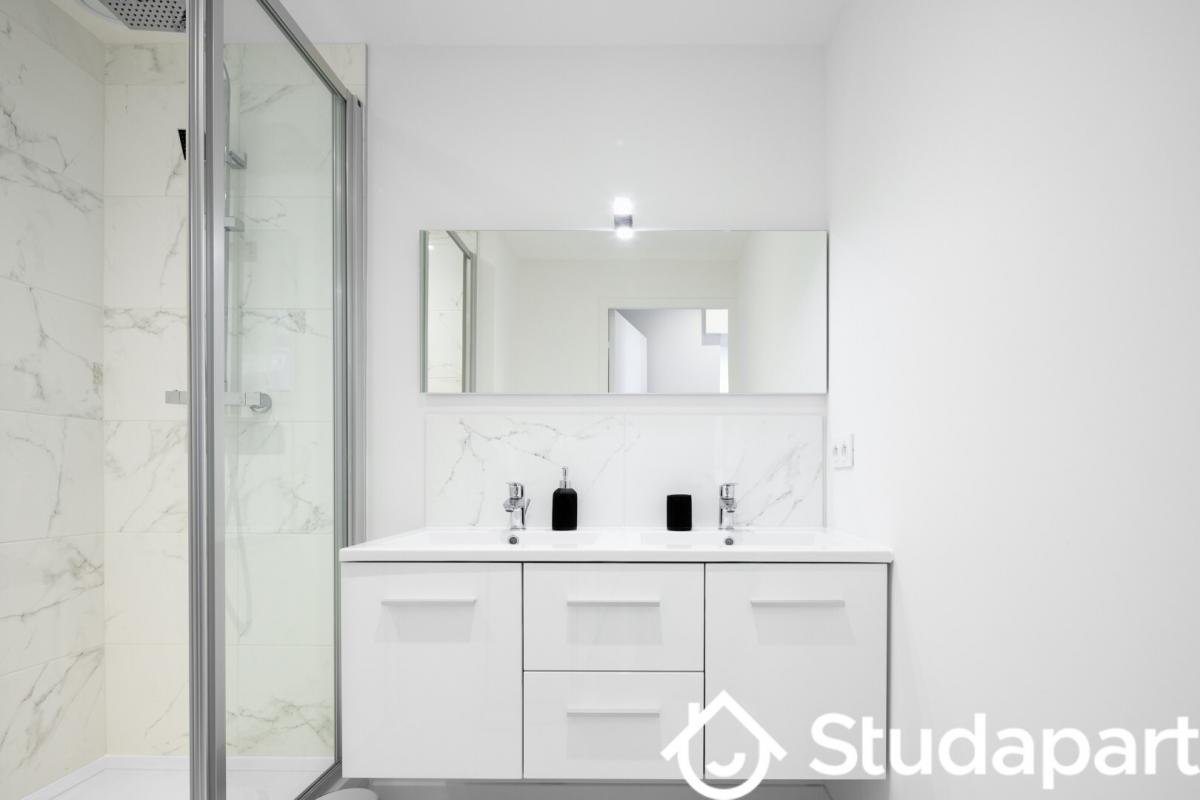 Idéalement conçu pour de la colocation, un couloir central dessert 1 WC indépendant, une salle de bain, 3 chambres, une salle d'eau avec machine à laver le linge. La 4ème chambre se situe du côté du salon.