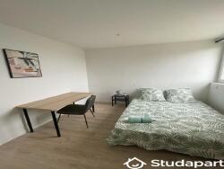 Chaque chambre est meublée d'un lit double, un espace bureau, et de rangements type placards/penderies.