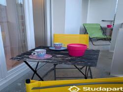 L'appartement dispose d'un séjour / salle à manger autour du bar, d'une grande cuisine équipée, de WC séparés, de 4 chambres, d'une salle de bain avec douche à l'italienne. En plus, un balcon orienté Sud pour réviser en transat sous le soleil ou simplement prendre le café avant les cours !