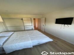 Séjour convivial avec balcon, cuisine entièrement équipée, buanderie. Les Chambres sont équipées d'une porte qui se ferme à clé pour plus de sécurité, d'un lit double, d'un bureau, d'une penderie, et d'une télé.