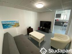 Elle dispose d'un grand espace de vie de 70m² au rez-de-chaussée donnant sur une terrasse avec une cuisine, un salon/coin télé et une buanderie. La colocation est entièrement équipée et meublée.