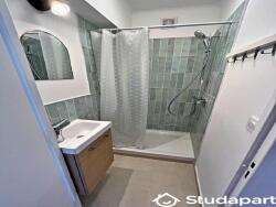 Appartement loué meublé qui comprend dans les parties communes une entrée séjour dont cuisine équipée, réfrigérateur-congélateur, lave-vaisselle, four, plaques à induction, machine à laver.