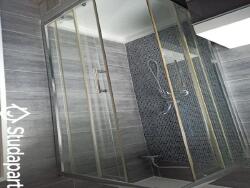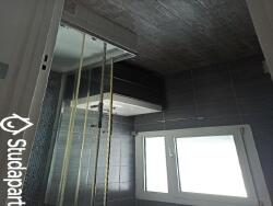 Salle de bains commune de 4 mètres carrés fonctionnelle et entièrement carrelée.