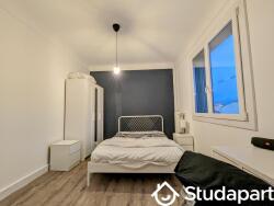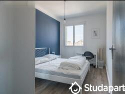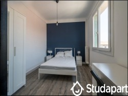 La chambre à louer fait 11M2 et est entièrement meublée ; elle se compose d'un lit double, d'un bureau et d'une armoire à dressing.