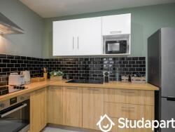 L'appartement se compose d'une entrée, d'une cuisine ouverte sur le salon, de 4 chambres, disposant chacune de sa propre salle d'eau, d'une TV à écran plat, d'un lit double, d'un bureau et d'une armoire penderie avec rangements.