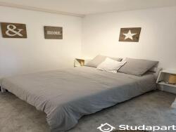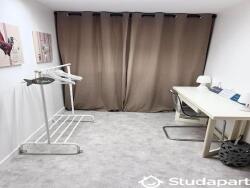 Il propose 2 chambres (avec rangements et lits 140 x 190) pour 2 colocataires. Les parties communes sont composées d'une pièce à vivre (TV) avec cuisine ouverte (LV, Micro onde, Plaques à induction, Réfrigérateur, Evier, cafetière, grille pain, bouilloire, LL), d'une salle d'eau avec WC et d'un bureau / dressing.