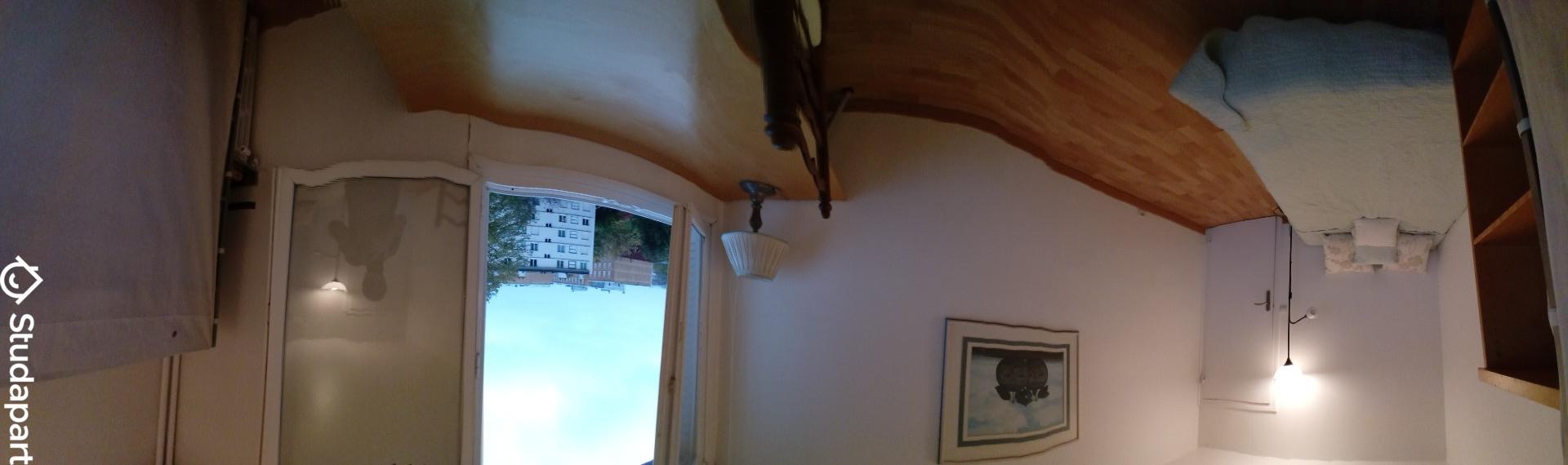 Tout le mobilier est prévu, tu disposeras d'un lit double, d'un espace de travail avec un bureau et d'une chaise, ainsi que d'une placard intégré, d'un miroir et d'une étagère. La couette est fournie, le reste de linge de lit n'est pas fourni. De plus, aucun vis à vis.