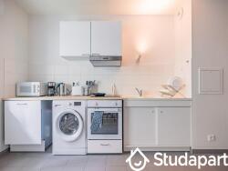 - Une cuisine toute équipée ? four, plaques à induction, réfrigérateur, congélateur, lave-linge, lave-vaisselle, micro-ondes, grille-pain, bouilloire, machine à expresso, vaisselle complète, fer et table à repasser, étendoir, aspirateur, etc. La cuisine, dotée d'un comptoir et de tabourets hauts, est ouverte sur le séjour.