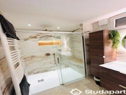 Dans la salle de bain vous trouverez une douche italienne un sèche cheveux deux placard de rangement ainsi qu'un sèche serviette
