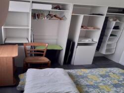 Chaque chambre est composée d'un lit double, une armoire, un bureau, une chaise roulante, ainsi qu'un verrou pour fermer la chambre à clés.
