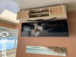 - Un très grand salon/salle à manger avec cuisine ouverte , le tout donnant sur la mer. Le salon est décoré avec goût et équipé de 2 canapés et d'un pouf. Il dispose d'une Smart TV 4K (50 pouces) avec Netflix, Prime Video, TV by Canal.