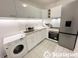 Cuisine équipée (LV, LL, four, micro-ondes, grand frigo-congélo, bouilloire)