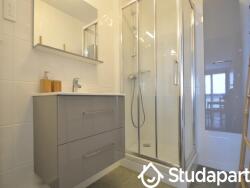 Les parties communes se composeront d'une belle cuisine entièrement aménagée et équipée avec meubles, plaque de cuisson, hotte, four, lave-vaisselle, réfrigérateur congélateur, micro-ondes, vaisselle complète (batteur, etc). La cuisine est ouverte sur un spacieux et lumineux salon de plus de 20 m² avec balcon et équipé d'un canapé, fauteuils, tables et chaises et d'une grande télévision. Grande salle de bain avec douche, nombreux rangements et équipements (lave-linge, seche- linge, ventilateur, fer, etc). WC indépendant. Stores électriques dans toutes les pièces, fenêtres double vitrage, pas de vis à vis.