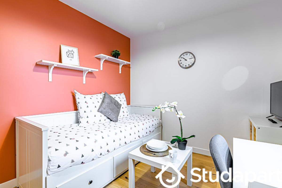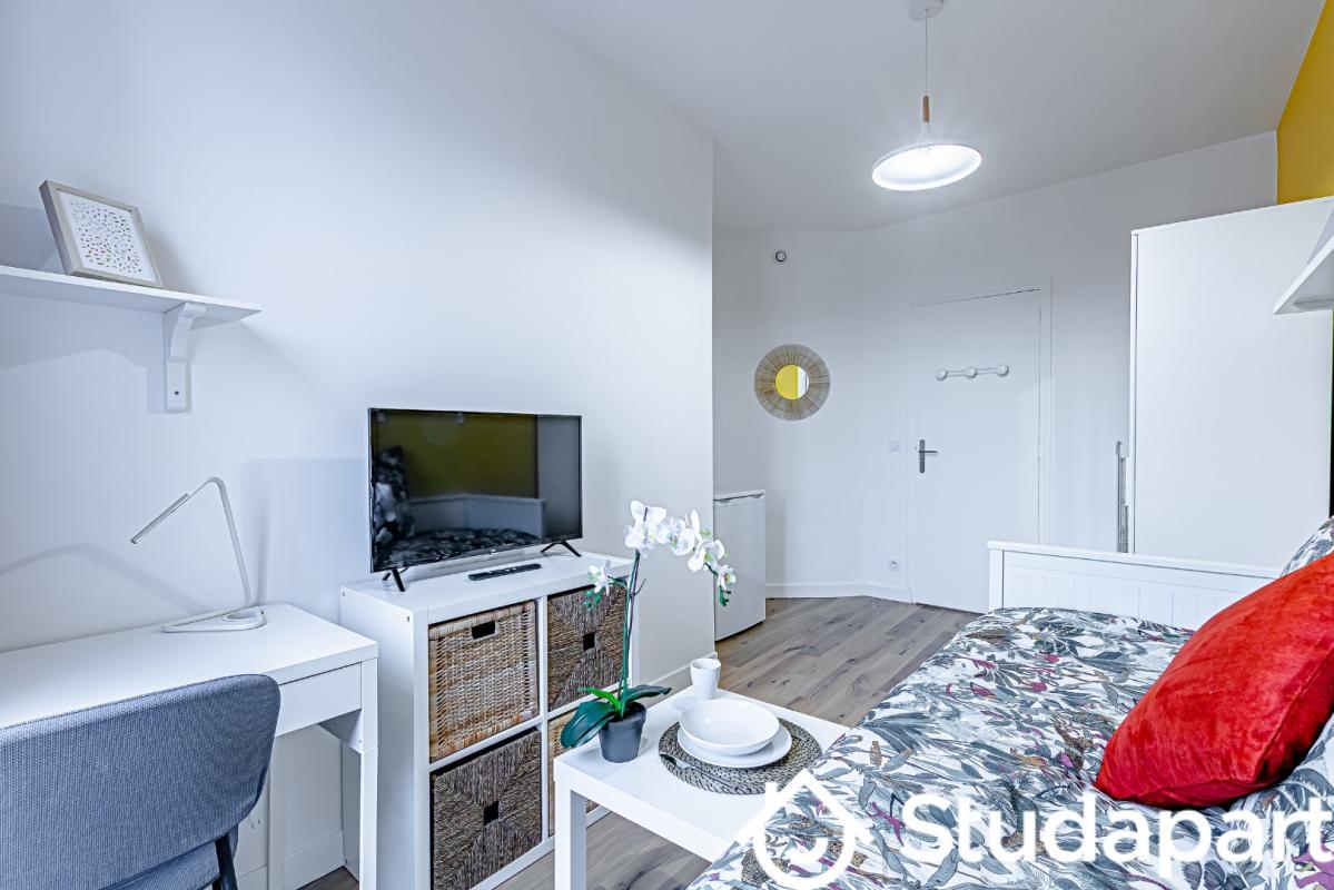 Équipements et mobilier fourni : lit double, armoire, table basse, bureau, chaise, réfrigérateur/congélateur, rangement chaussures, étendoir à linge, draps de lit.