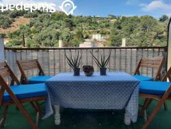 Cuisine équipée , vaisselle ,micro onde , four , plaque 4 feux , lave linge .Terrasse