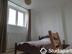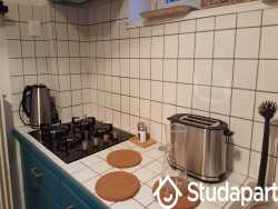 Le logement fraichement rénové est composé d'une entrée / séjour, une salle de bain commune avec WC et baignoire, machine à laver, sèche linge, une cuisine équipée (plaque gaz, hotte, frigidaire+ congélateur, lave vaisselle, four micro ondes+ chaleur tournante, ?) et de 3 chambres (12, 13 et 13 m2). Chaque chambre est équipée d'une armoire, d'un bureau avec une chaise, un lit double, prise Ethernet, verrou individuel.