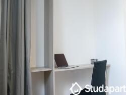 Caractéristiques des chambres : salle de bain et WC Privé, Lit , rangement, bureau avec chaise et étagère.