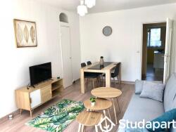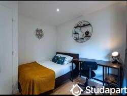 - Equipée d'un lit 2 places confortable avec rangement, un bureau avec chaise, table de nuit, armoire avec miroir, étendoir et TV.