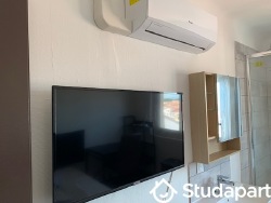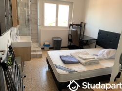 L'appartement est refait à neuf, isolation performante et entièrement meublé et équipé d'une sonnette RING. La chambre ferme avec porte et serrure de sécurité, avec lit 120x190 grand confort, bureau, fauteuil à roulettes, armoire de rangement, dispose de sa salle d'eau et de ses toilettes privées intégrés à la chambre, d'une climatisation réversible, chauffage électrique, volet roulant électrique, Smart TV HD 80 cm, Wifi.