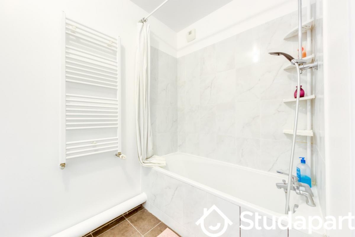 - Une baignoire et un meuble vasque
