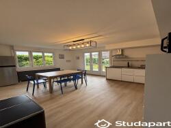 - Une cuisine moderne, entièrement meublée et équipée (four, plaques, frigo, lave-vaisselle, vaisselle, etc.)