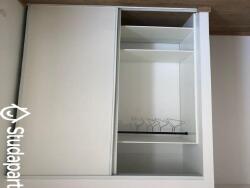 Chaque chambre dispose d'un lit de 140x190, un bureau, des étagères pour les livres, une penderie complète (cintres, tiroirs, étagères), et des rideaux roulants électriques.