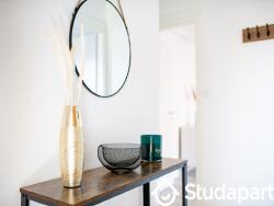 Laissez-vous charmer par la convivialité d'une colocation avec tout le confort d'un appartement meublé et décoré avec goût proche de toutes commodités. Très lumineux, cet appartement est un excellent compromis entre le calme, la proximité du centre-ville et des transports ( Arrêt de Tram à 2 min à pied ) Voie rapide qui se trouve à moins de 5 min en voiture