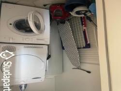 Ce logement se trouve au 5ème étage sans ascenseur d'un immeuble ancien. Il dispose d'une pièce de vie avec coin repas et coin TV, d'une cuisine suréquipée, de 3 chambres en tout dont une avec sa propre salle de bain, d'une salle d'eau (pour 2 personnes), d'1 WC, d'une buanderie avec lave linge et sèche linge.