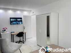 Chambres meublées avec goût : Chaque chambre est équipée d'un ensemble literie complet : lit double avec matelas (140x190 cm), un protège-matelas, une couverture, un oreiller, d'un placard, d'un mini réfrigérateur avec un compartiment congélateur, d'une table et lampe de chevet, d'une serrure à clé, d'un bureau avec une chaise et d'une TV connectée.