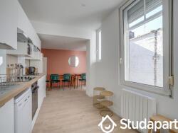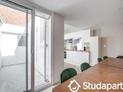 Le logement se situe dans le quartier Vauban, en plein c?ur de Lille. De nombreux commerces, transports publics, restaurants se trouvent à proximité. La colocation est à l'étage 0 . Elle est entièrement meublée et dispose d' une cuisine complètement équipée avec frigo, casseroles, vaisselle, bouilloire, micro-ondes, ustensiles, grille-pain, poêles? Mais aussi lave-linge, tancarville, fer à repasser, planche à repasser.