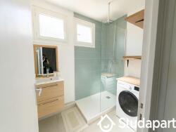 La salle de bain est équipée d'une douche à l'italienne et d'une machine à laver/sèche-linge dernière génération.