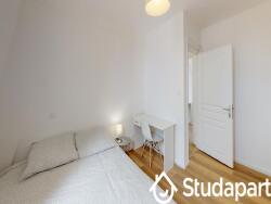 La chambre à louer est privative et bénéficie d'une belle luminosité. Elle est équipée d'un lit double (literie complète : matelas, protèges matelas, couette, oreillers), d'une table de chevet, d'une armoire et d'un bureau.