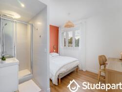 Le bien dispose d'une cuisine avec coin repas entièrement équipée (four, micro-ondes, machine Nespresso, vaisselles etc.), d'un salon aménagé avec télé écran plat, de 3 jolies chambres meublées et équipées (lit double, bureau et télé) avec chacune une salle d'eau privative ainsi que d'un espace buanderie avec machine à laver, d'un WC indépendant commun et d'un balcon.